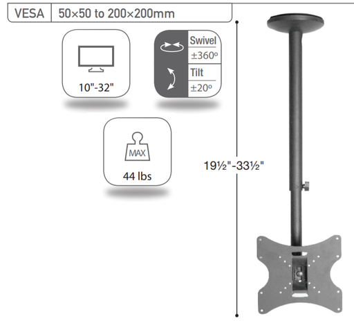 Sonora LC1-36-N : Support de plafond pour téléviseur de 19'' à 32'', 44lb max.