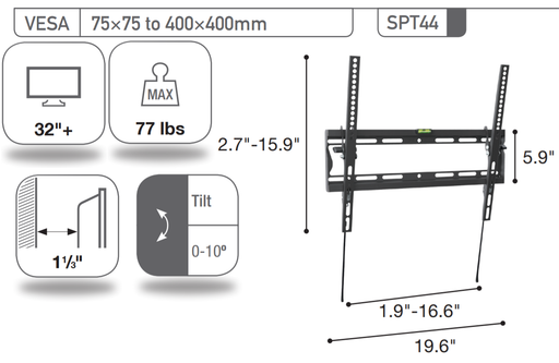 Sonora SPT44 - Support universel inclinable pour téléviseur 32'' et plus, 77lb max.