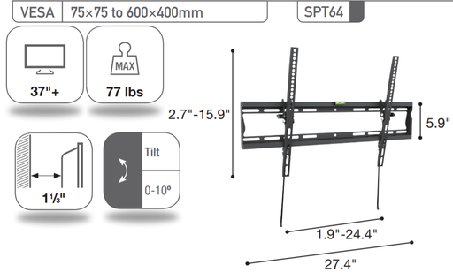 Sonora SPT64 - Support universel avec inclinaison pour téléviseur 37'' et plus, 77lb max.