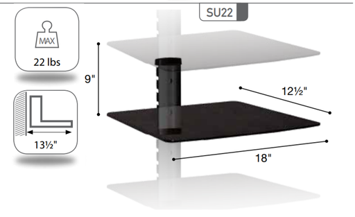 Sonora SU22 - Tablette murale en verre 12.5 pouces et capacité 22 lb